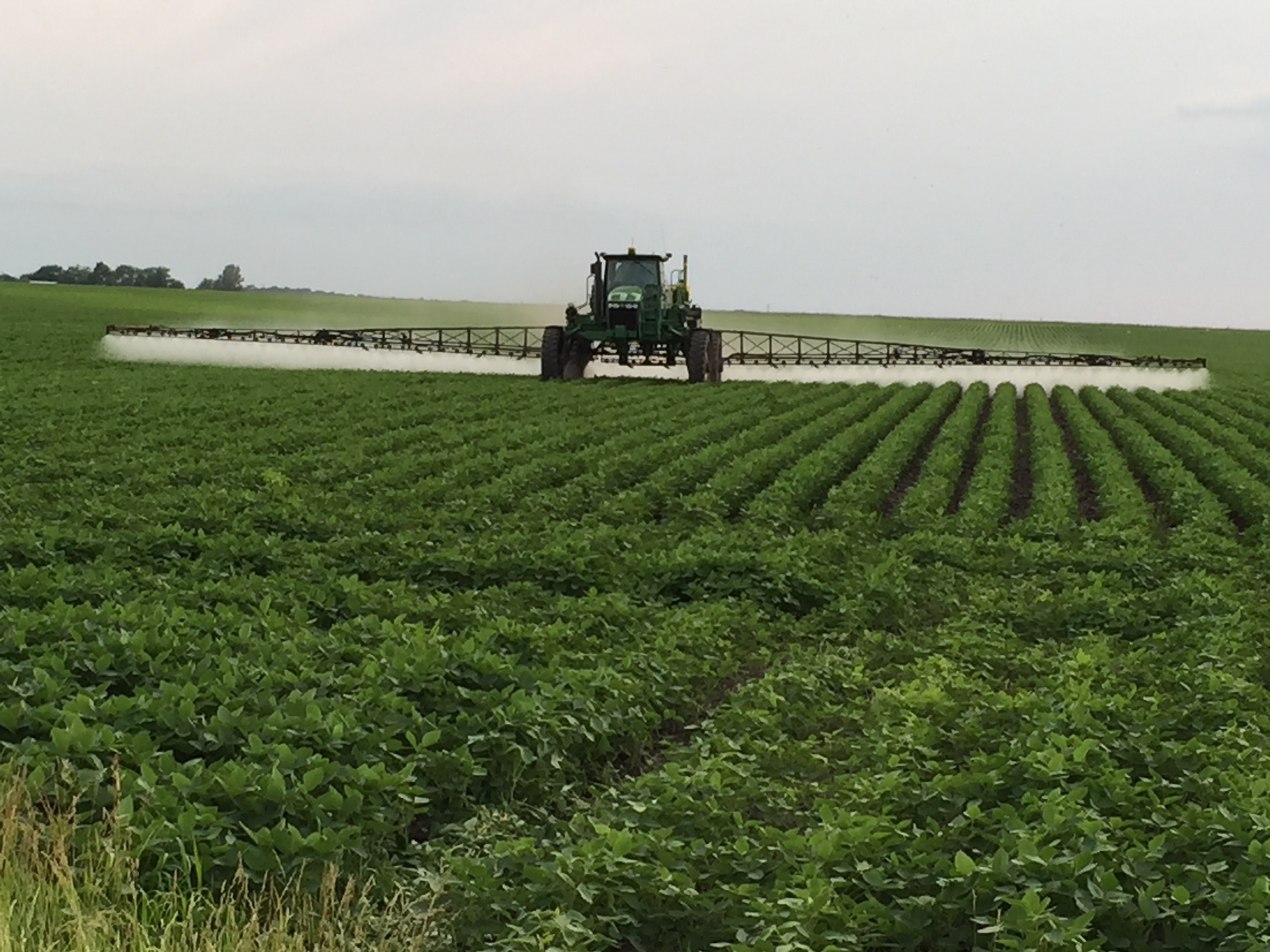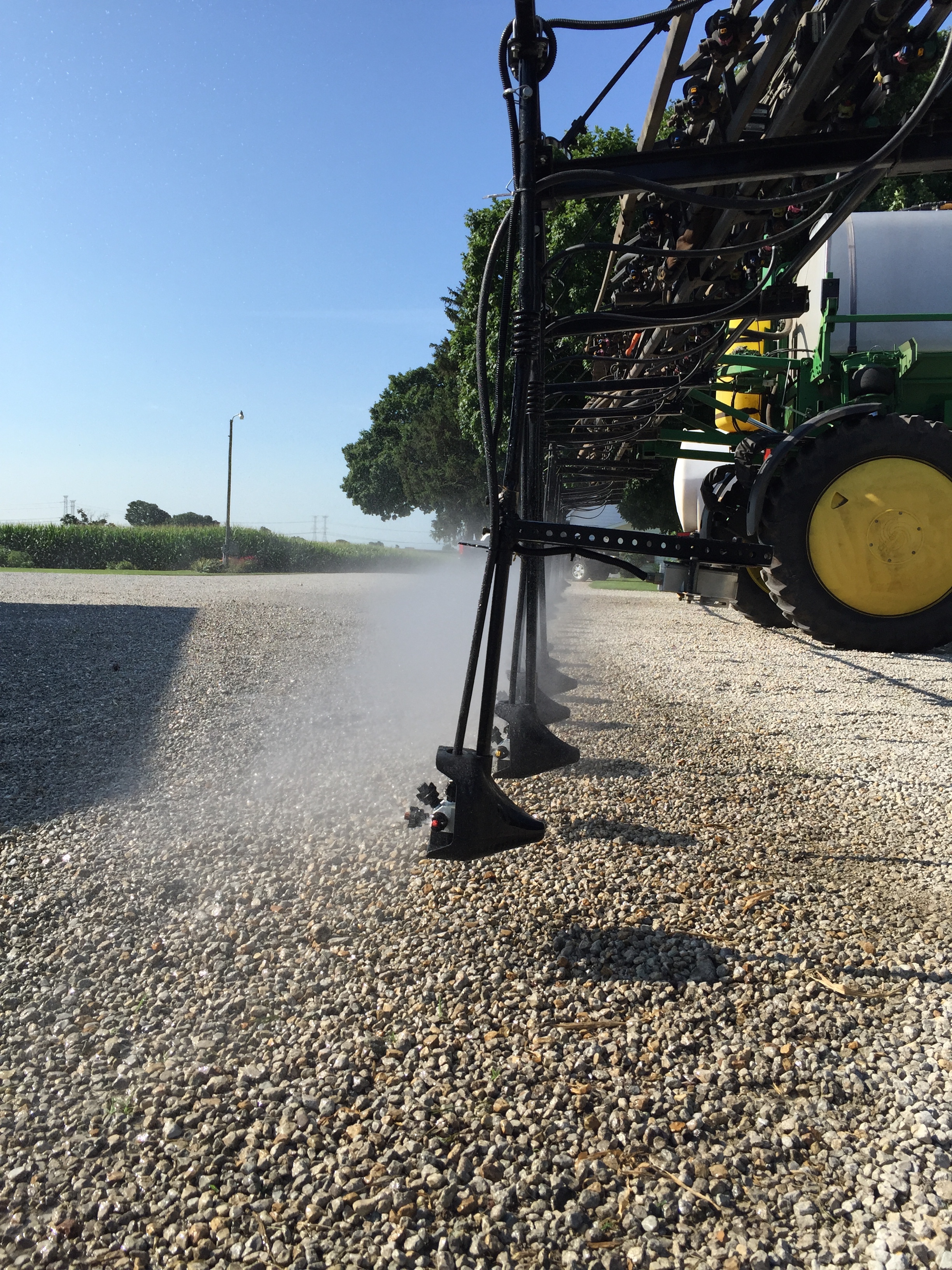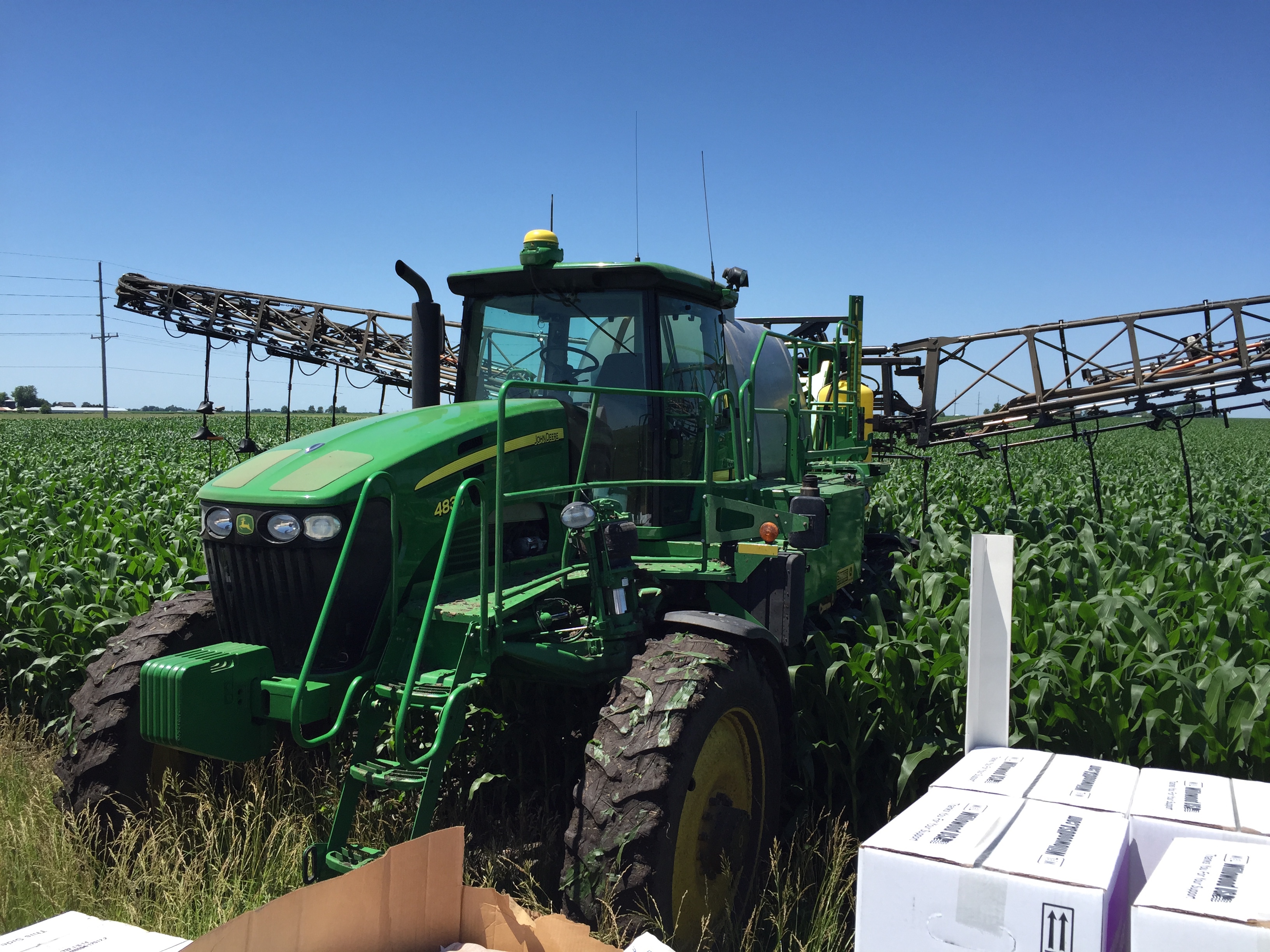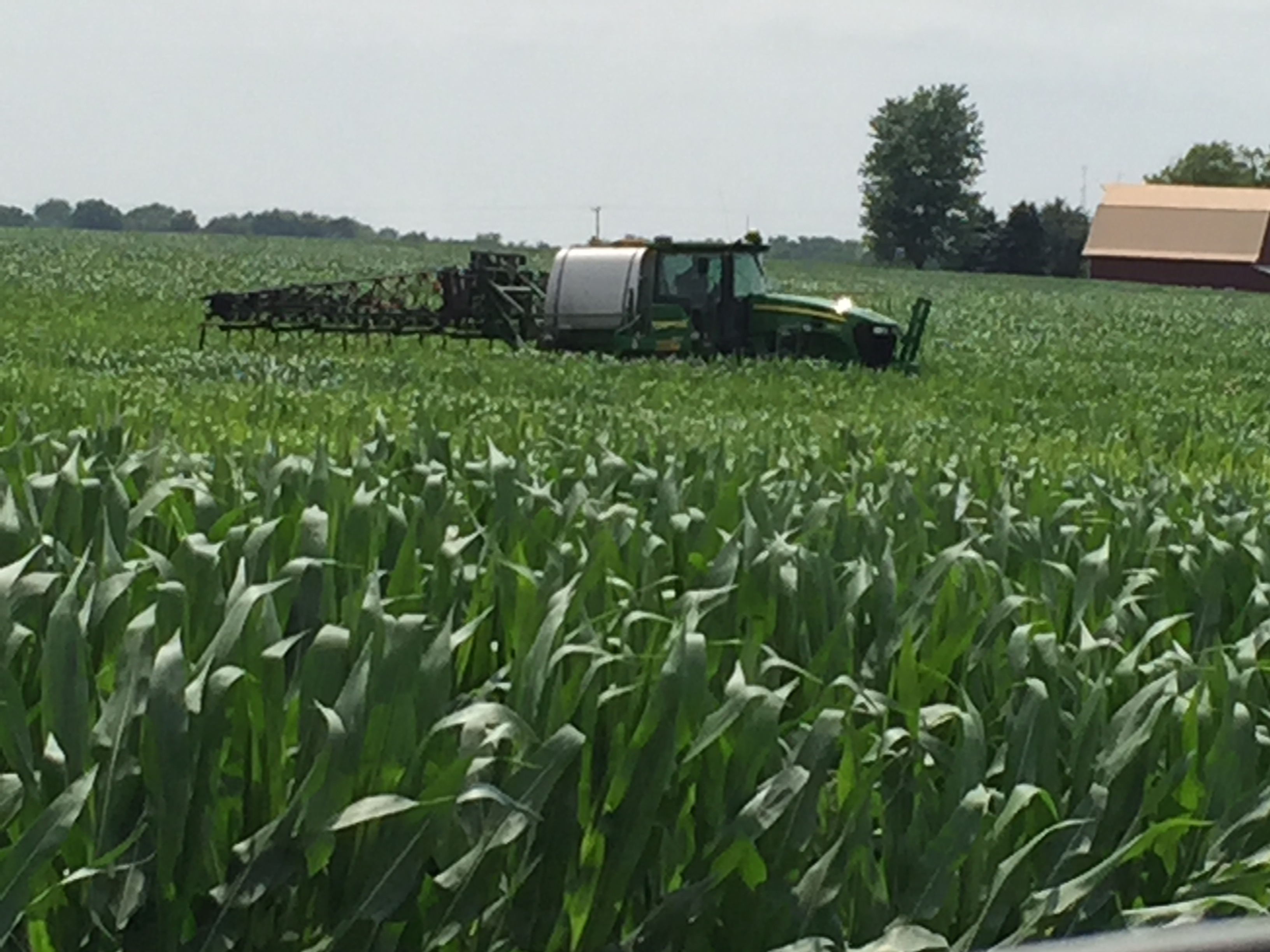 We found out that we could successfully apply nitrogen with the Y-Drop system in 8.5′ corn. We found out that the firmer planter tracks would help hold up the sprayer much better than expected on wet ground. We found out that properly placed nitrogen can make a noticeable difference in yellow corn in just a couple of days. We found out that you can drive to Canada and back in one night when it means having the parts needed to be able run the sprayer through corn that is ready to tassel. We found out how well an all-wheel-drive sprayer can pull through a muddy spot. We found out how big weeds we can and cannot kill with good weed-growing conditions in non-GMO beans. We found out how valuable drainage tile is on a year like this! We found out where more tile is needed. We found out how nice it is that planes can apply fungicide to corn regardless of how muddy it is. We found out how to apply fungicide under the canopy of the beans to better protect against diseases like white mold using 360 Undercovers.