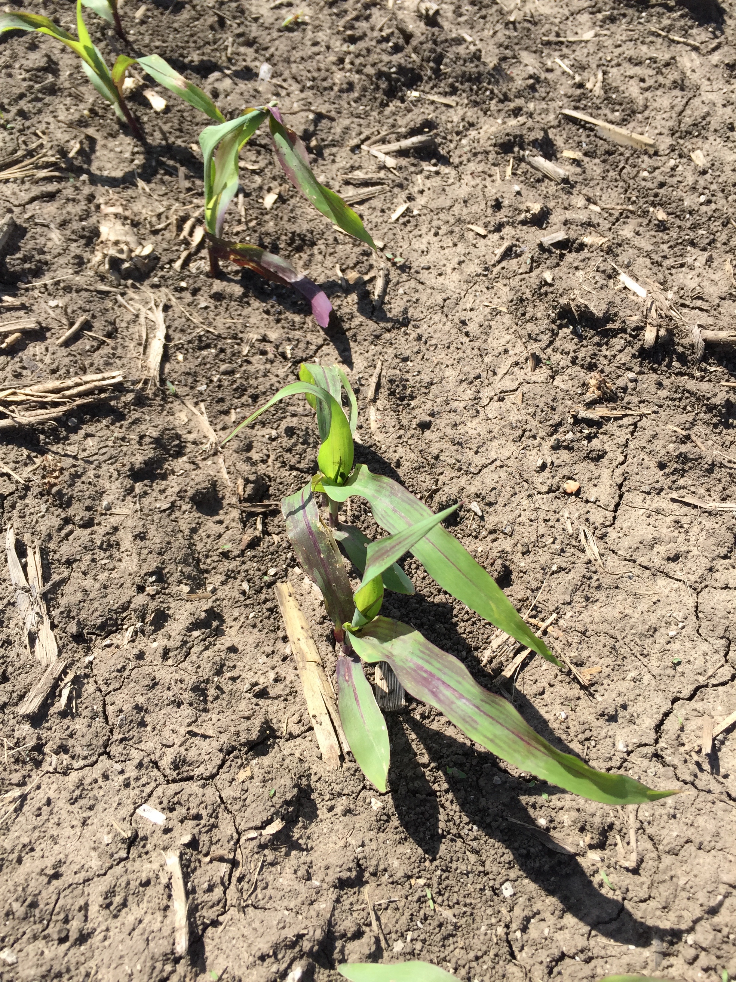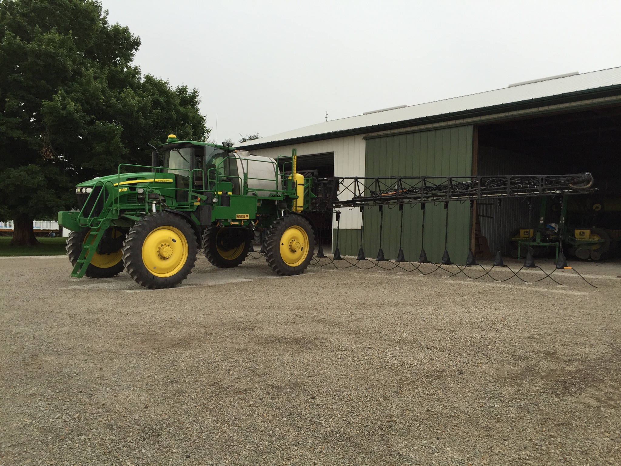 Corn growth nearly stood still during that cool period and some low areas even showed some frost and purpling due to the cold (see picture). However, that now seems like a distant memory as we have been in what feels like the heat of summer for a few weeks now. The corn quickly grew and took on an excellent deep, green color. We were able to complete herbicide spraying on both corn and beans in a timely fashion and moved right into Y-Drop nitrogen application. As a couple of the pictures show, we were also able to get the spring equipment cleaned and shined up and put away!
